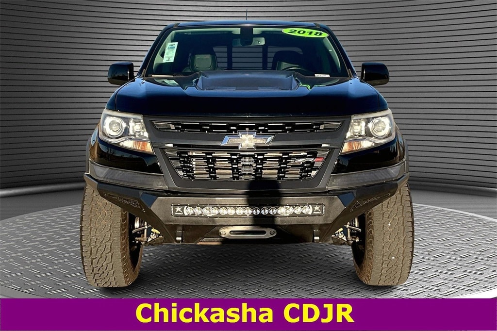 This 2018 Chevrolet Colorado ZR2 in Black comes with the following features: V6 8-Speed Automatic 4WD Features and options may vary from information contained on third party listing sites, please see dealer's website or call for actual vehicle specifications, and Black Bowtie Emblem Package (LPO), Heavy-Duty Trailering Package, Off-Road Appearance Package, Preferred Equipment Group 4ZR (Black Rear Bumpers, Black Spray-On Bedliner w/Chevrolet Logo, Driver-Selectable Full-Locking Front Differential, Driver-Selectable Full-Locking Rear Differential, and Integrated Trailer Brake Controller), ZR2 Midnight Special Edition (Off-Road Lights (LPO), Off-Road Sport Bar (LPO) (SCU), and Wheels: 17" x 8" Gloss Black Aluminum), 17" x 8" Aluminum Wheels, 3.42 Rear Axle Ratio, 4-Way Power Front Passenger Seat Adjuster, 4-Wheel Disc Brakes, 6 Speakers, 6-Speaker Audio System Feature, ABS brakes, Air Conditioning, Alloy wheels, AM/FM radio: SiriusXM, Apple CarPlay, Auto-dimming Rear-View mirror, Automatic temperature control, Compass, Delay-off headlights, Driver 4-Way Power Seat Adjuster, Driver door bin, Driver vanity mirror, Dual front impact airbags, Dual front side impact airbags, Electronic Stability Control, Exterior Parking Camera Rear, Front anti-roll bar, Front Bucket Seats, Front Center Armrest, Front fog lights, Front License Plate Kit, Front reading lights, Front wheel independent suspension, Fully automatic headlights, Heated door mirrors, Heated Driver & Front Passenger Seats, Heated front seats, Hitch Guidance, Illuminated entry, Leather-Appointed Seat Trim, Low tire pressure warning, Occupant sensing airbag, Outside temperature display, Overhead airbag, Overhead console, Panic alarm, Passenger door bin, Passenger vanity mirror, Power door mirrors, Power Driver Lumbar Control Seat Adjuster, Power driver seat, Power Passenger Lumbar Control Seat Adjuster, Power passenger seat, Power steering, Power windows, Premium audio system: Chevrolet MyLink, Radio data system, Radio: AM/FM Stereo w/8" Diagonal Color Touch Screen, Rear reading lights, Rear seat center armrest, Rear step bumper, Rear window defroster, Remote keyless entry, Security system, SiriusXM Satellite Radio, Speed control, Speed-sensing steering, Steering wheel mounted audio controls, Tachometer, Telescoping steering wheel, Tilt steering wheel, Tow/Haul Mode, Traction control, Trip computer, and Variably intermittent wipers Black Bowtie Emblem Package (LPO), Heavy-Duty Trailering Package, Off-Road Appearance Package, Preferred Equipment Group 4ZR (Black Rear Bumpers, Black Spray-On Bedliner w/Chevrolet Logo, Driver-Selectable Full-Locking Front Differential, Driver-Selectable Full-Locking Rear Differential, and Integrated Trailer Brake Controller), ZR2 Midnight Special Edition (Off-Road Lights (LPO), Off-Road Sport Bar (LPO) (SCU), and Wheels: 17" x 8" Gloss Black Aluminum), 17" x 8" Aluminum Wheels, 3.42 Rear Axle Ratio, 4-Way Power Front Passenger Seat Adjuster, 4-Wheel Disc Brakes, 6 Speakers, 6-Speaker Audio System Feature, ABS brakes, Air Conditioning, Alloy wheels, AM/FM radio: SiriusXM, Apple CarPlay, Auto-dimming Rear-View mirror, Automatic temperature control, Compass, Delay-off headlights, Driver 4-Way Power Seat Adjuster, Driver door bin, Driver vanity mirror, Dual front impact airbags, Dual front side impact airbags, Electronic Stability Control, Exterior Parking Camera Rear, Front anti-roll bar, Front Bucket Seats, Front Center Armrest, Front fog lights, Front License Plate Kit, Front reading lights, Front wheel independent suspension, Fully automatic headlights, Heated door mirrors, Heated Driver & Front Passenger Seats, Heated front seats, Hitch Guidance, Illuminated entry, Leather-Appointed Seat Trim, Low tire pressure warning, Occupant sensing airbag, Outside temperature display, Overhead airbag, Overhead console, Panic alarm, Passenger door bin, Passenger vanity mirror, Power door mirrors, Power Driver Lumbar Control Seat Adjuster, Power driver seat, P