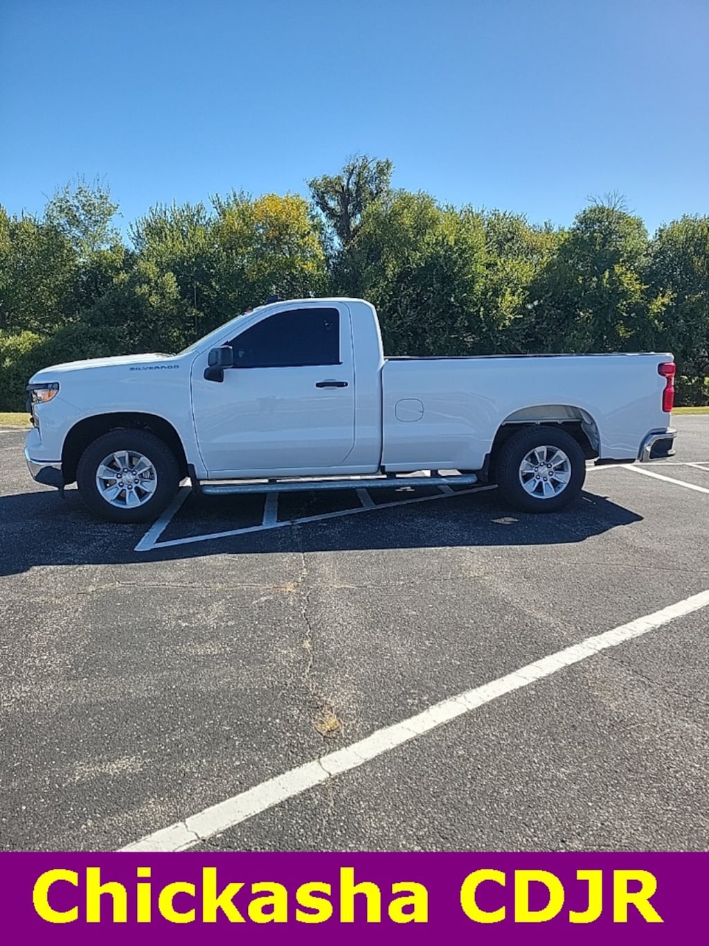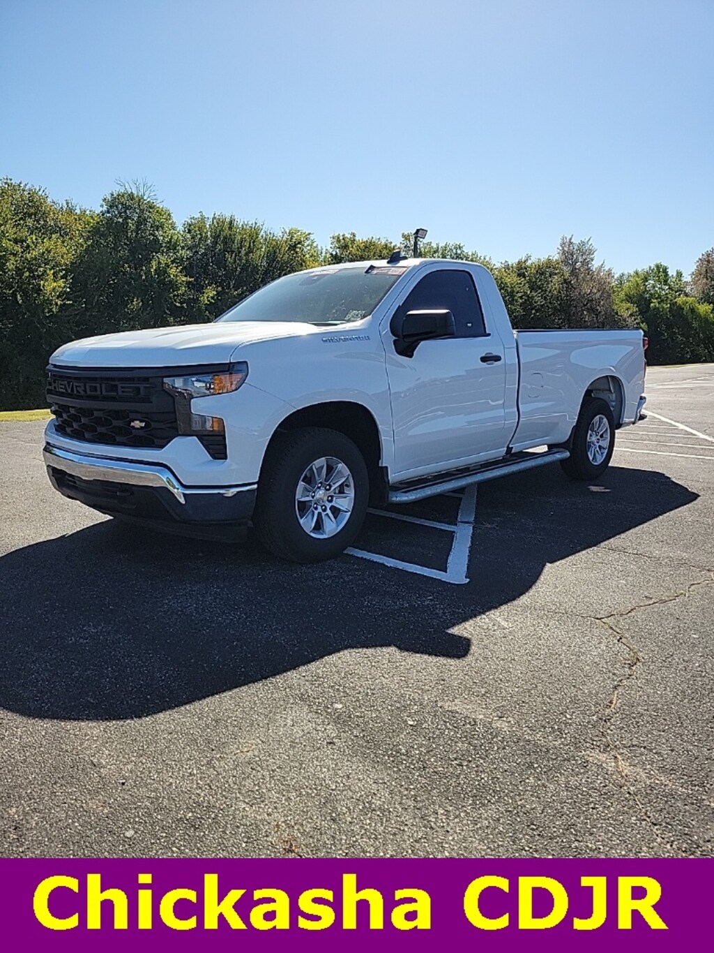 This 2024 Chevrolet Silverado 1500 WT in Summit White comes with the following features: EcoTec3 5.3L V8 10-Speed Automatic RWD Features and options may vary from information contained on third party listing sites, please see dealer's website or call for actual vehicle specifications, and Preferred Equipment Group 1WT (3.5" Monochromatic Display Driver Info Center, Black (Semi-Gloss) Front Bumper, Black (Semi-Gloss) Rear Bumper, Bluetooth® For Phone, Chevrolet Connected Access Capable, Electrical Steering Column Lock, Front Frame-Mounted Black Recovery Hooks, HD Rear Vision Camera, Heated Power-Adjustable Outside Mirrors, Inside Rear-View Mirror w/Tilt, Locking Tailgate, Manual Tailgate Function w/No EZ Lift, Manual Tilt Wheel Steering Column, OnStar & Chevrolet Connected Services Capable, Power Front Windows w/Driver Express Up/Down, Power Front Windows w/Passenger Express Down, Remote Keyless Entry, Rubberized-Vinyl Floor Covering, SiriusXM Delete, Solar Absorbing Tinted Glass, Standard Tailgate, and Wi-Fi Hot Spot Capable), Standard Suspension Package, 170 Amp Alternator, 2 Speakers, 2-Speaker Audio System, 220 Amp Alternator, 4-Wheel Disc Brakes, 40/20/40 Front Split Bench Seat, ABS brakes, Air Conditioning, Auto High-beam Headlights, Automatic Emergency Braking, Auxiliary External Transmission Oil Cooler, Brake assist, Compass, Delay-off headlights, Driver door bin, Dual front impact airbags, Dual front side impact airbags, Electronic Cruise Control, Electronic Stability Control, External Engine Oil Cooler, EZ Lift Power Lock & Release Tailgate, Following Distance Indicator, Forward Collision Alert, Front anti-roll bar, Front Center Armrest w/Storage, Front Chrome Bumper, Front Pedestrian Braking, Front reading lights, Front wheel independent suspension, Fully automatic headlights, Heated door mirrors, Illuminated entry, IntelliBeam Automatic High Beam On/Off, Lane Keep Assist w/Lane Departure Warning, Low tire pressure warning, Occupant sensing airbag, Outside temperature display, Overhead airbag, Overhead console, Panic alarm, Passenger door bin, Passenger vanity mirror, Power door mirrors, Power steering, Power windows, Premium audio system: Chevrolet Infotainment 3, Radio data system, Radio: Chevrolet Infotainment 3 System, Rear Chrome Bumper, Rear reading lights, Rear step bumper, Remote keyless entry, Speed-sensing steering, Tachometer, Tilt steering wheel, Traction control, Trip computer, Variably intermittent wipers, Vinyl Seat Trim, Voltmeter, Wheels: 17" x 8" Bright Silver Painted Aluminum, and Wheels: 17" x 8" Ultra Silver Painted Steel Preferred Equipment Group 1WT (3.5" Monochromatic Display Driver Info Center, Black (Semi-Gloss) Front Bumper, Black (Semi-Gloss) Rear Bumper, Bluetooth® For Phone, Chevrolet Connected Access Capable, Electrical Steering Column Lock, Front Frame-Mounted Black Recovery Hooks, HD Rear Vision Camera, Heated Power-Adjustable Outside Mirrors, Inside Rear-View Mirror w/Tilt, Locking Tailgate, Manual Tailgate Function w/No EZ Lift, Manual Tilt Wheel Steering Column, OnStar & Chevrolet Connected Services Capable, Power Front Windows w/Driver Express Up/Down, Power Front Windows w/Passenger Express Down, Remote Keyless Entry, Rubberized-Vinyl Floor Covering, SiriusXM Delete, Solar Absorbing Tinted Glass, Standard Tailgate, and Wi-Fi Hot Spot Capable), Standard Suspension Package, 170 Amp Alternator, 2 Speakers, 2-Speaker Audio System, 220 Amp Alternator, 4-Wheel Disc Brakes, 40/20/40 Front Split Bench Seat, ABS brakes, Air Conditioning, Auto High-beam Headlights, Automatic Emergency Braking, Auxiliary External Transmission Oil Cooler, Brake assist, Compass, Delay-off headlights, Driver door bin, Dual front impact airbags, Dual front side impact airbags, Electronic Cruise Control, Electronic Stability Control, External Engine Oil Cooler, EZ Lift Power Lock & Release Tailgate, Following Distance Indicator, Forward Collision Alert, Front anti-roll bar, Front Center Armrest w/Storage, Fron