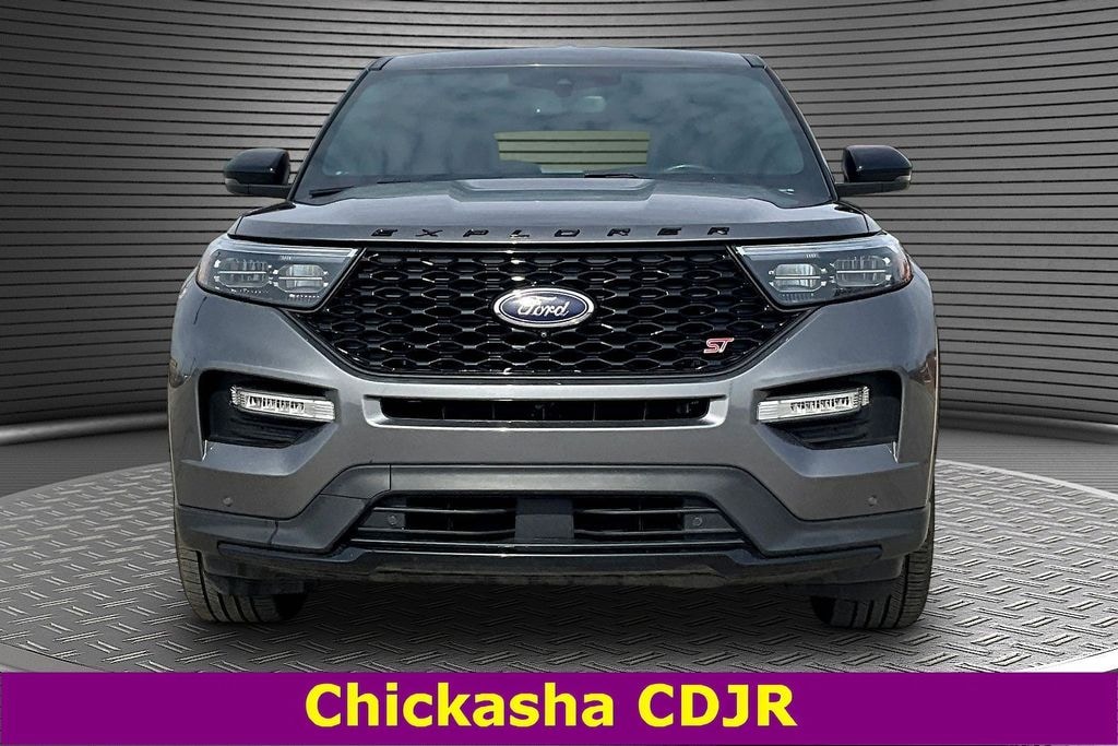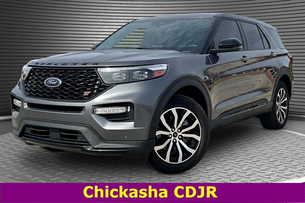 This 2021 Ford Explorer ST in Gray Metallic comes with the following features: 3.0L EcoBoost V6 10-Speed Automatic 4WD Features and options may vary from information contained on third party listing sites, please see dealer's website or call for actual vehicle specifications, and Equipment Group 401A, Ford Co-Pilot360 Assist+ (Evasive Steering Assist, Intelligent Adaptive Cruise Control, and Speed Sign Recognition), Premium Technology Package (10.1" LCD Capacitive Portrait Touchscreen, 2 Additional Speakers, and Leather Htd/Ventilated Sport Captain's Chairs), ST High Package (110V/150W AC Power Outlet, 360-Degree Camera w/Split View, Active Park Assist 2.0, Auto-Dimming Rearview Mirror (Interior), FordPass Connect, Forward Sensing System, Front Rain-Sensing Wipers, Hands-Free Foot-Activated Liftgate, Memory Driver's Seat, Power Tilt/Telescoping Steering Column, Radio: B&O Sound System by Bang & Olufsen, Reverse Brake Assist, Second Row Heated Seats, Sideview Mirrors w/Gloss Black Caps, SYNC 3 Communications & Entertainment System, Third Row PowerFold (Folds Flat), Universal Garage Door Opener (UGDO), Voice-Activated Touchscreen Navigation System, and Wireless Charging Pad), ST Street Pack (Performance Front & Rear Brakes and Wheels: 21" Aluminum), 20" Machined Aluminum w/Painted Pockets Wheels, 3.58 Non-Limited-Slip Rear Axle Ratio, 3rd row seats: bench, 4-Wheel Disc Brakes, 6 Speakers, ABS brakes, Air Conditioning, Alloy wheels, AM/FM radio: SiriusXM, AM/FM Stereo, Auto High-beam Headlights, Automatic temperature control, Brake assist, Bumpers: body-color, Cargo Area Management System, Compass, Delay-off headlights, Driver door bin, Driver vanity mirror, Dual front impact airbags, Dual front side impact airbags, Electronic Stability Control, Emergency communication system: SYNC 3 911 Assist, Exterior Parking Camera Rear, Four wheel independent suspension, Front & Second Row Floor Liners (16B), Front anti-roll bar, Front Bucket Seats, Front Center Armrest, Front dual zone A/C, Front fog lights, Front reading lights, Fully automatic headlights, Heated door mirrors, Heated front seats, Heated steering wheel, Illuminated entry, Knee airbag, Leather steering wheel, Low tire pressure warning, Occupant sensing airbag, Outside temperature display, Overhead airbag, Overhead console, Panic alarm, Passenger door bin, Passenger vanity mirror, Power door mirrors, Power driver seat, Power Liftgate, Power passenger seat, Power steering, Power windows, Rear air conditioning, Rear anti-roll bar, Rear reading lights, Rear window defroster, Rear window wiper, Remote keyless entry, Security system, SelectShift Capability w/Paddle Shifters, Speed control, Speed-sensing steering, Speed-Sensitive Wipers, Split folding rear seat, Spoiler, Sport steering wheel, Steering wheel mounted audio controls, SYNC 3/Apple CarPlay/Android Auto, Tachometer, Telescoping steering wheel, Tilt steering wheel, Traction control, Trip computer, and Variably intermittent wipers Equipment Group 401A, Ford Co-Pilot360 Assist+ (Evasive Steering Assist, Intelligent Adaptive Cruise Control, and Speed Sign Recognition), Premium Technology Package (10.1" LCD Capacitive Portrait Touchscreen, 2 Additional Speakers, and Leather Htd/Ventilated Sport Captain's Chairs), ST High Package (110V/150W AC Power Outlet, 360-Degree Camera w/Split View, Active Park Assist 2.0, Auto-Dimming Rearview Mirror (Interior), FordPass Connect, Forward Sensing System, Front Rain-Sensing Wipers, Hands-Free Foot-Activated Liftgate, Memory Driver's Seat, Power Tilt/Telescoping Steering Column, Radio: B&O Sound System by Bang & Olufsen, Reverse Brake Assist, Second Row Heated Seats, Sideview Mirrors w/Gloss Black Caps, SYNC 3 Communications & Entertainment System, Third Row PowerFold (Folds Flat), Universal Garage Door Opener (UGDO), Voice-Activated Touchscreen Navigation System, and Wireless Charging Pad), ST Street Pack (Performance Front & Rear Brakes and Wheels: 21" Aluminum), 20" Machined Aluminum w/