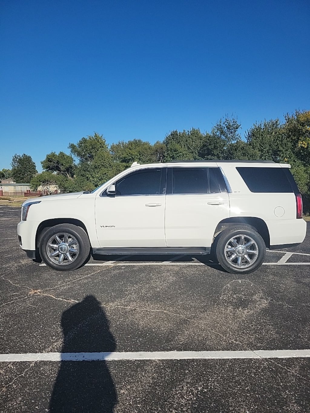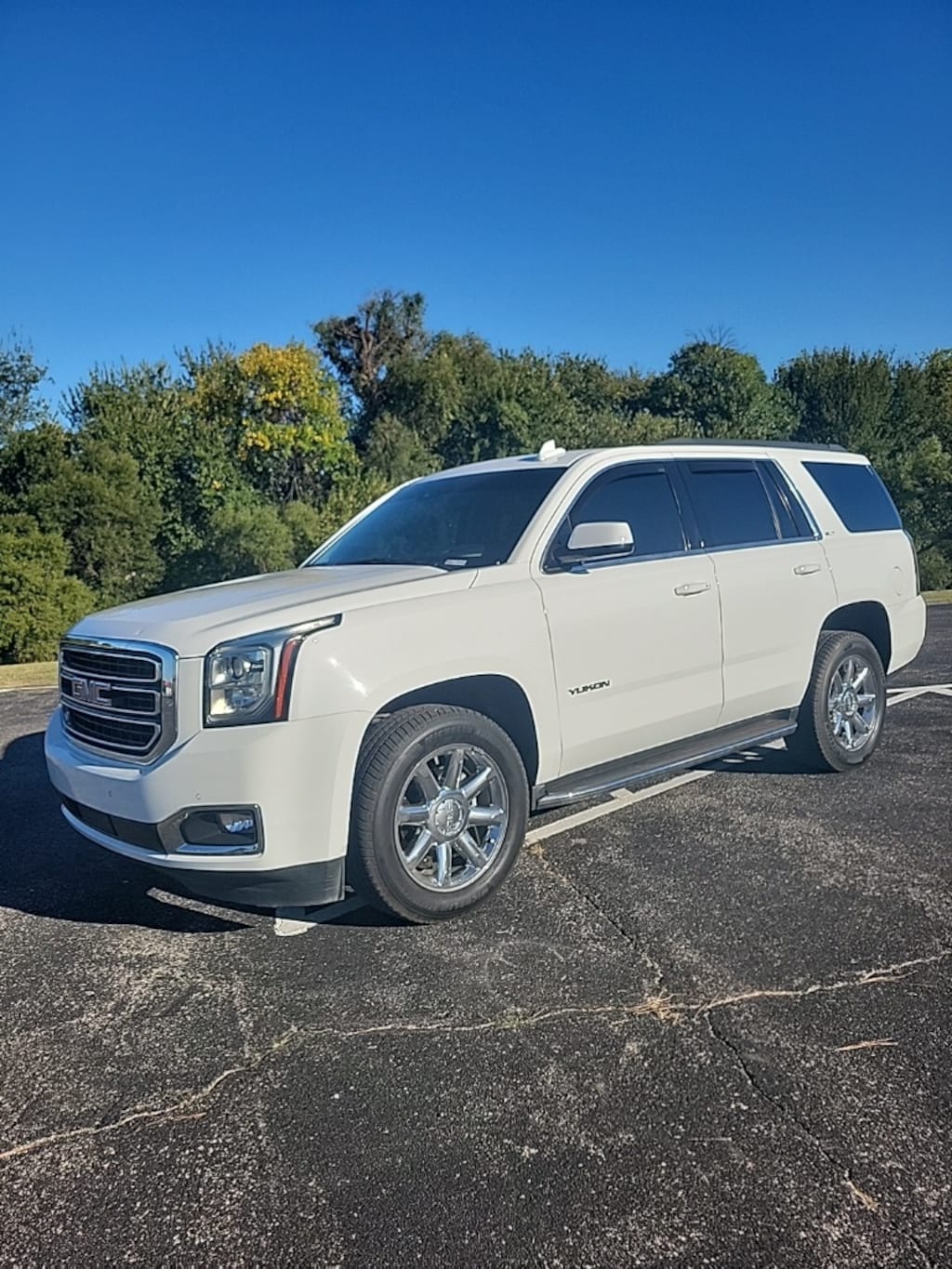 This 2019 GMC Yukon SLT in Summit White comes with the following features: EcoTec3 5.3L V8 6-Speed Automatic Electronic with Overdrive 4WD Features and options may vary from information contained on third party listing sites, please see dealer's website or call for actual vehicle specifications, and Enhanced Driver Alert Package (Forward Collision Alert, IntelliBeam Automatic High Beam On/Off, Lane Keep Assist w/Lane Departure Warning, and Low Speed Forward Automatic Braking), License Plate Front Mounting Package, Memory Package, Preferred Equipment Group 4SA (4-Wheel Antilock Disc Brakes, 5 Auxiliary 12-volt Power Outlets, Black Assist Steps w/Chrome Strip, Hands Free Power Programmable Rear Liftgate, Heated Leather-Wrapped Steering Wheel, Inside Rear-View Auto-Dimming Mirror, Lane Change Alert w/Side Blind Zone Alert, Passive Entry System, Power Release 2nd Row 60/40 Split-Folding Bench Seat, Power Tilt & Telescopic Steering Column, Power-Adjustable Pedals For Accelerator & Brake, Push Button Keyless Start, Rear Cross Traffic Alert, Remote Keyless Entry, and Universal Home Remote), Premium Smooth Ride Suspension Package, 3.08 Rear Axle Ratio, 3rd row seats: split-bench, 4-Wheel Disc Brakes, 9 Speakers, ABS brakes, Adjustable pedals, Air Conditioning, Alloy wheels, AM/FM radio: SiriusXM, Apple CarPlay/Android Auto, Auto High-beam Headlights, Auto-dimming door mirrors, Auto-dimming Rear-View mirror, Automatic temperature control, Bose Premium 9-Speaker System, Brake assist, Bumpers: body-color, CD Player, CD player, Compass, Delay-off headlights, Driver door bin, Driver vanity mirror, Dual front impact airbags, Dual front side impact airbags, Electronic Stability Control, Emergency communication system: OnStar and GMC connected services capable, Exterior Parking Camera Rear, Front anti-roll bar, Front Bucket Seats, Front Center Armrest, Front dual zone A/C, Front fog lights, Front reading lights, Front wheel independent suspension, Full-Feature Reclining Bucket Seats, Fully automatic headlights, Garage door transmitter, Heated & Ventilated Driver & Front Passenger Seats, Heated door mirrors, Heated front seats, Heated rear seats, Heated steering wheel, Illuminated entry, Low tire pressure warning, Memory seat, Occupant sensing airbag, Outside temperature display, Overhead airbag, Overhead console, Panic alarm, Passenger door bin, Passenger vanity mirror, Pedal memory, Perforated Leather-Appointed Seat Trim, Power door mirrors, Power driver seat, Power Liftgate, Power passenger seat, Power Release 2nd Row Bucket Seats, Power steering, Power Tilt-Sliding Sunroof w/Express-Open/Close, Power windows, Premium audio system: IntelliLink, Radio: AM/FM/SiriusXM, Rain sensing wipers, Rear air conditioning, Rear anti-roll bar, Rear reading lights, Rear seat center armrest, Rear window defroster, Rear window wiper, Remote keyless entry, Roof rack: rails only, Security system, SiriusXM Radio, Speed control, Speed-sensing steering, Split folding rear seat, Spoiler, Steering wheel memory, Steering wheel mounted audio controls, Tachometer, Telescoping steering wheel, Tilt steering wheel, Traction control, Trip computer, Turn signal indicator mirrors, Variably intermittent wipers, Ventilated front seats, Voltmeter, and Wheels: 18" x 8.5" Bright Machined Aluminum Enhanced Driver Alert Package (Forward Collision Alert, IntelliBeam Automatic High Beam On/Off, Lane Keep Assist w/Lane Departure Warning, and Low Speed Forward Automatic Braking), License Plate Front Mounting Package, Memory Package, Preferred Equipment Group 4SA (4-Wheel Antilock Disc Brakes, 5 Auxiliary 12-volt Power Outlets, Black Assist Steps w/Chrome Strip, Hands Free Power Programmable Rear Liftgate, Heated Leather-Wrapped Steering Wheel, Inside Rear-View Auto-Dimming Mirror, Lane Change Alert w/Side Blind Zone Alert, Passive Entry System, Power Release 2nd Row 60/40 Split-Folding Bench Seat, Power Tilt & Telescopic Steering Column, Power-Adjustable Pedals For Accelerator & Brak