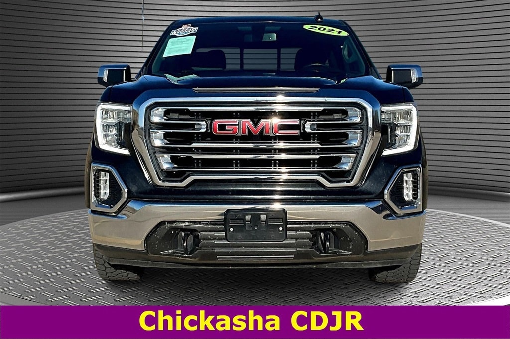 This 2021 GMC Sierra 1500 SLT in Onyx Black comes with the following features: EcoTec3 5.3L V8 8-Speed Automatic 4WD Features and options may vary from information contained on third party listing sites, please see dealer's website or call for actual vehicle specifications, and Preferred Equipment Group 4SA (12-Volt Rear Auxiliary Power Outlet, 120-Volt Bed Mounted Power Outlet, 120-Volt Instrument Panel Power Outlet, 170 Amp Alternator, 4G LTE Wi-Fi Hotspot Capable, Auto-Locking Rear Differential, Auxiliary External Transmission Oil Cooler, Chrome Grille, Color-Keyed Carpeting Floor Covering, Compass, Deep-Tinted Glass, Electric Rear-Window Defogger, Electrical Lock Control Steering Column, Front Frame-Mounted Black Recovery Hooks, GMC Connected Access Capable, Heated Driver & Front Outboard Passenger Seating, Hitch Guidance w/Hitch View, In-Vehicle Trailering App, Integrated Trailer Brake Controller, Keyless Open & Start, LED Cargo Area Lighting, Manual Tilt-Wheel & Telescoping Steering Column, OnStar & GMC Connected Services Capable, Power Door Locks, Power Front Passenger Windows w/Express Up/Down, Power Front Windows w/Driver Express Up/Down, Power Rear Windows w/Express Down, ProGrade Trailering System, Rear Dual USB Charging-Only Ports, Rear Wheelhouse Liners, Remote Vehicle Starter System, Steering Wheel Audio Controls, and Theft Deterrent System (Unauthorized Entry)), SLT Convenience Package (2 USB Ports, 2 USB Ports (1st Row), Floor-Mounted Center Console, Front Bucket Seats, Heated 2nd Row Outboard Seats, Power Sliding Rear Window w/Rear Defogger, Universal Home Remote, and Ventilated Driver & Front Passenger Seats), Texas Edition SLT Premium Package (20" x 9" Polished Aluminum Wheels, Chrome Wheel To Wheel Assist Steps, and Texas Edition Badging), Trailering Package (Hitch Guidance), X31 Off-Road & Protection Package (All-Weather Floor Liner (LPO) and Spray-On Pickup Bed Liner w/GMC Logo), X31 Off-Road Package (Dual Exhaust w/Premium Tips, Heavy-Duty Air Filter, Hill Descent Control, Off-Road Suspension, and X31 Hard Badge), 10-Way Power Driver Seat Adjuster w/Lumbar, 10-Way Power Passenger Seat Adjuster w/Lumbar, 3.23 Rear Axle Ratio, 4-Wheel Disc Brakes, 6 Speakers, 6-Speaker Audio System Feature, ABS brakes, Air Conditioning, Alloy wheels, AM/FM radio: SiriusXM with 360L, Apple CarPlay/Android Auto, Auto-dimming door mirrors, Auto-dimming Rear-View mirror, Automatic temperature control, Brake assist, Bumpers: chrome, Delay-off headlights, Driver door bin, Driver Memory, Driver vanity mirror, Dual front impact airbags, Dual front side impact airbags, Electronic Stability Control, Front 40/20/40 Split-Bench Seat, Front anti-roll bar, Front Center Armrest w/Storage, Front dual zone A/C, Front fog lights, Front License Plate Kit, Front reading lights, Front wheel independent suspension, Fully automatic headlights, Heated door mirrors, Heated front seats, Heated steering wheel, Heavy Duty Suspension, Illuminated entry, Low tire pressure warning, Memory seat, Occupant sensing airbag, Outside temperature display, Overhead airbag, Overhead console, Panic alarm, Passenger door bin, Passenger vanity mirror, Perf Leather-Appointed Front Outboard Seat Trim, Power door mirrors, Power driver seat, Power passenger seat, Power steering, Power windows, Premium audio system: GMC Infotainment System, Radio data system, Radio: Premium GMC Infotainment Sys w/Multi-Touch, Rear reading lights, Rear seat center armrest, Rear step bumper, Rear window defroster, Remote keyless entry, Security system, SiriusXM w/360L, Speed control, Speed-sensing steering, Split folding rear seat, Steering wheel mounted audio controls, Tachometer, Telescoping steering wheel, Tilt steering wheel, Traction control, Trip computer, Variably intermittent wipers, Voltmeter, and Wheels: 18" x 8.5" 6-Spoke Machined Aluminum Preferred Equipment Group 4SA (12-Volt Rear Auxiliary Power Outlet, 120-Volt Bed Mounted Power Outlet, 120-Volt Instrument Panel Power Outlet