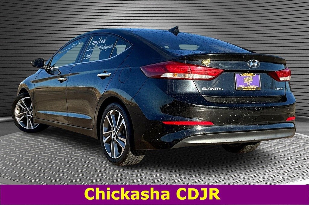 This 2017 Hyundai Elantra Limited in Phantom Black comes with the following features: 2.0L 4-Cylinder DOHC 16V 6-Speed Automatic with Shiftronic FWD Features and options may vary from information contained on third party listing sites, please see dealer's website or call for actual vehicle specifications, and Option Group 1, 17" Alloy Wheels, 4-Wheel Disc Brakes, 6 Speakers, ABS brakes, Air Conditioning, Alloy wheels, AM/FM radio: SiriusXM, Auto-Dimming Mirror w/HomeLink & Blue Link, Automatic temperature control, Brake assist, Bumpers: body-color, Cargo Net, Carpeted Floor Mats, Delay-off headlights, Driver door bin, Driver vanity mirror, Dual front impact airbags, Dual front side impact airbags, Electronic Stability Control, Emergency communication system: Blue Link, Exterior Parking Camera Rear, Front anti-roll bar, Front Bucket Seats, Front Center Armrest, Front dual zone A/C, Front reading lights, Front wheel independent suspension, Fully automatic headlights, Heated door mirrors, Heated Front Bucket Seats, Heated front seats, Illuminated entry, Knee airbag, Leather Seating Surfaces, Low tire pressure warning, Occupant sensing airbag, Outside temperature display, Overhead airbag, Overhead console, Panic alarm, Passenger door bin, Passenger vanity mirror, Power door mirrors, Power driver seat, Power steering, Power windows, Radio: AM/FM/SiriusXM/MP3, Rear Bumper Applique, Rear seat center armrest, Rear window defroster, Remote keyless entry, Reversible Cargo Tray, Security system, Speed control, Speed-sensing steering, Split folding rear seat, Steering wheel mounted audio controls, Tachometer, Telescoping steering wheel, Tilt steering wheel, Traction control, Trip computer, Turn signal indicator mirrors, and Variably intermittent wipers Option Group 1, 17" Alloy Wheels, 4-Wheel Disc Brakes, 6 Speakers, ABS brakes, Air Conditioning, Alloy wheels, AM/FM radio: SiriusXM, Auto-Dimming Mirror w/HomeLink & Blue Link, Automatic temperature control, Brake assist, Bumpers: body-color, Cargo Net, Carpeted Floor Mats, Delay-off headlights, Driver door bin, Driver vanity mirror, Dual front impact airbags, Dual front side impact airbags, Electronic Stability Control, Emergency communication system: Blue Link, Exterior Parking Camera Rear, Front anti-roll bar, Front Bucket Seats, Front Center Armrest, Front dual zone A/C, Front reading lights, Front wheel independent suspension, Fully automatic headlights, Heated door mirrors, Heated Front Bucket Seats, Heated front seats, Illuminated entry, Knee airbag, Leather Seating Surfaces, Low tire pressure warning, Occupant sensing airbag, Outside temperature display, Overhead airbag, Overhead console, Panic alarm, Passenger door bin, Passenger vanity mirror, Power door mirrors, Power driver seat, Power steering, Power windows, Radio: AM/FM/SiriusXM/MP3, Rear Bumper Applique, Rear seat center armrest, Rear window defroster, Remote keyless entry, Reversible Cargo Tray, Security system, Speed control, Speed-sensing steering, Split folding rear seat, Steering wheel mounted audio controls, Tachometer, Telescoping steering wheel, Tilt steering wheel, Traction control, Trip computer, Turn signal indicator mirrors, and Variably intermittent wipers.