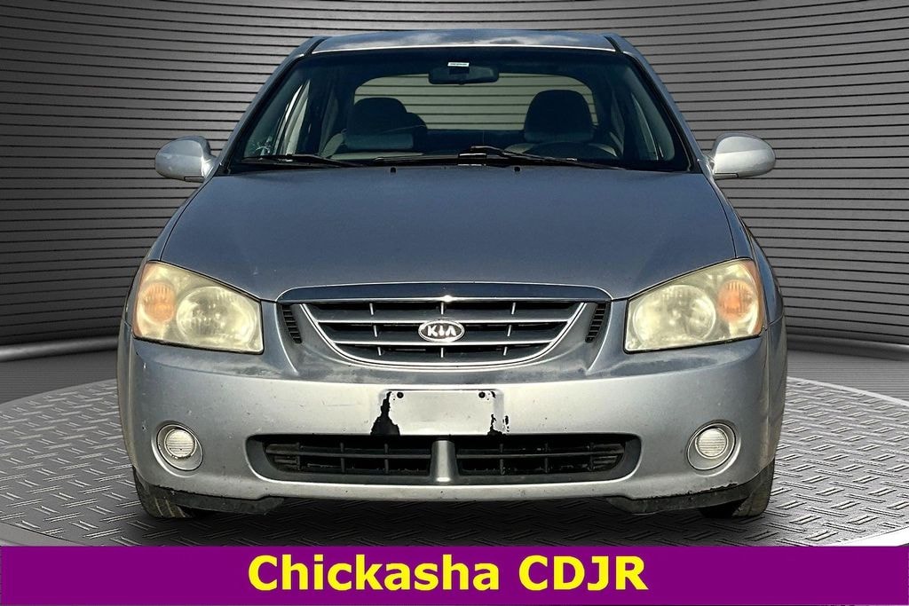 This 2005 Kia Spectra in Silver comes with the following features: 2.0L DOHC VVT FWD Features and options may vary from information contained on third party listing sites, please see dealer's website or call for actual vehicle specifications, and 2-DIN AM/FM/CD Audio System, 4-Wheel Disc Brakes, 6 Speakers, AM/FM radio, Bodyside moldings, Bumpers: body-color, CD player, Driver door bin, Driver vanity mirror, Dual front impact airbags, Dual front side impact airbags, Four wheel independent suspension, Front anti-roll bar, Front Bucket Seats, Front Center Armrest w/Storage, Front reading lights, Low tire pressure warning, Occupant sensing airbag, Overhead airbag, Overhead console, Passenger door bin, Passenger vanity mirror, Power steering, Rear anti-roll bar, Rear window defroster, Speed-sensing steering, Split folding rear seat, Tachometer, Tilt steering wheel, and Variably intermittent wipers 2-DIN AM/FM/CD Audio System, 4-Wheel Disc Brakes, 6 Speakers, AM/FM radio, Bodyside moldings, Bumpers: body-color, CD player, Driver door bin, Driver vanity mirror, Dual front impact airbags, Dual front side impact airbags, Four wheel independent suspension, Front anti-roll bar, Front Bucket Seats, Front Center Armrest w/Storage, Front reading lights, Low tire pressure warning, Occupant sensing airbag, Overhead airbag, Overhead console, Passenger door bin, Passenger vanity mirror, Power steering, Rear anti-roll bar, Rear window defroster, Speed-sensing steering, Split folding rear seat, Tachometer, Tilt steering wheel, and Variably intermittent wipers.
