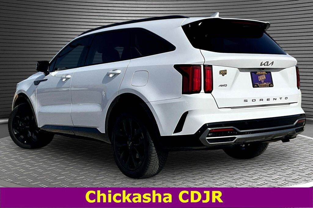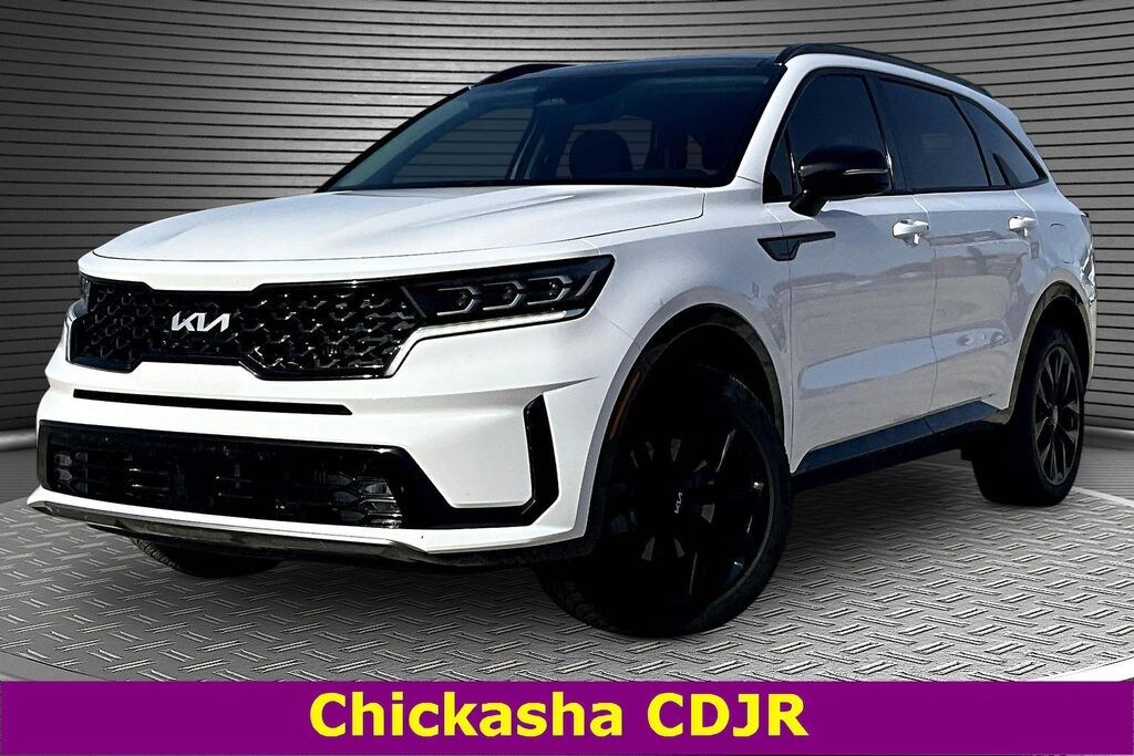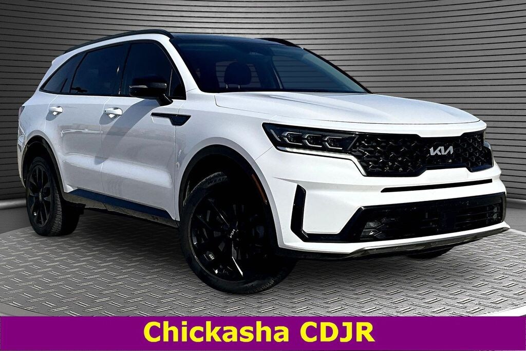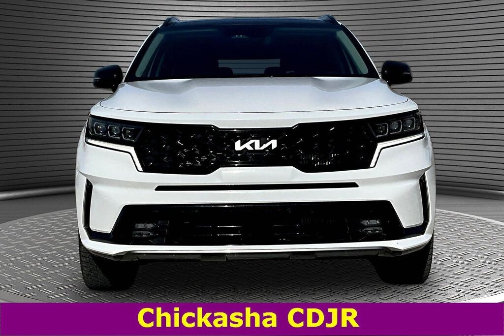 This 2022 Kia Sorento SX in Glacial White Pearl comes with the following features: 2.5L I4 DGI Turbocharged DOHC 16V LEV3-ULEV70 281hp 8-Speed DCT AWD Features and options may vary from information contained on third party listing sites, please see dealer's website or call for actual vehicle specifications, and 3.316 Axle Ratio, 3rd row seats: split-bench, 4-Wheel Disc Brakes, 6 Speakers, ABS brakes, Air Conditioning, Alloy wheels, AM/FM radio: SiriusXM, Apple CarPlay & Android Auto, Auto High-beam Headlights, Automatic temperature control, Brake assist, Bumpers: body-color, Delay-off headlights, Driver door bin, Driver vanity mirror, Dual front impact airbags, Dual front side impact airbags, Electronic Stability Control, Emergency communication system: UVO Link, Exterior Parking Camera Rear, Four wheel independent suspension, Front anti-roll bar, Front Bucket Seats, Front Center Armrest, Front dual zone A/C, Front fog lights, Front reading lights, Fully automatic headlights, Heated door mirrors, Heated Front Bucket Seats, Heated front seats, Illuminated entry, Knee airbag, Leather steering wheel, Low tire pressure warning, Navigation System, Occupant sensing airbag, Outside temperature display, Overhead airbag, Overhead console, Panic alarm, Passenger door bin, Passenger vanity mirror, Power door mirrors, Power driver seat, Power Liftgate, Power moonroof, Power passenger seat, Power steering, Power windows, Radio data system, Radio: AM/FM Audio System, Rear air conditioning, Rear anti-roll bar, Rear reading lights, Rear window defroster, Rear window wiper, Remote keyless entry, Roof rack: rails only, Security system, Smart Key w/ Push Button and Remote Start, Speed control, Speed-sensing steering, Split folding rear seat, Spoiler, Steering wheel mounted audio controls, SynTex Artificial Leather Seat Trim, Tachometer, Telescoping steering wheel, Tilt steering wheel, Traction control, Trip computer, Turn signal indicator mirrors, Variably intermittent wipers, and Wheels: 8.5J x 20" Gloss Black Alloy 3.316 Axle Ratio, 3rd row seats: split-bench, 4-Wheel Disc Brakes, 6 Speakers, ABS brakes, Air Conditioning, Alloy wheels, AM/FM radio: SiriusXM, Apple CarPlay & Android Auto, Auto High-beam Headlights, Automatic temperature control, Brake assist, Bumpers: body-color, Delay-off headlights, Driver door bin, Driver vanity mirror, Dual front impact airbags, Dual front side impact airbags, Electronic Stability Control, Emergency communication system: UVO Link, Exterior Parking Camera Rear, Four wheel independent suspension, Front anti-roll bar, Front Bucket Seats, Front Center Armrest, Front dual zone A/C, Front fog lights, Front reading lights, Fully automatic headlights, Heated door mirrors, Heated Front Bucket Seats, Heated front seats, Illuminated entry, Knee airbag, Leather steering wheel, Low tire pressure warning, Navigation System, Occupant sensing airbag, Outside temperature display, Overhead airbag, Overhead console, Panic alarm, Passenger door bin, Passenger vanity mirror, Power door mirrors, Power driver seat, Power Liftgate, Power moonroof, Power passenger seat, Power steering, Power windows, Radio data system, Radio: AM/FM Audio System, Rear air conditioning, Rear anti-roll bar, Rear reading lights, Rear window defroster, Rear window wiper, Remote keyless entry, Roof rack: rails only, Security system, Smart Key w/ Push Button and Remote Start, Speed control, Speed-sensing steering, Split folding rear seat, Spoiler, Steering wheel mounted audio controls, SynTex Artificial Leather Seat Trim, Tachometer, Telescoping steering wheel, Tilt steering wheel, Traction control, Trip computer, Turn signal indicator mirrors, Variably intermittent wipers, and Wheels: 8.5J x 20" Gloss Black Alloy.