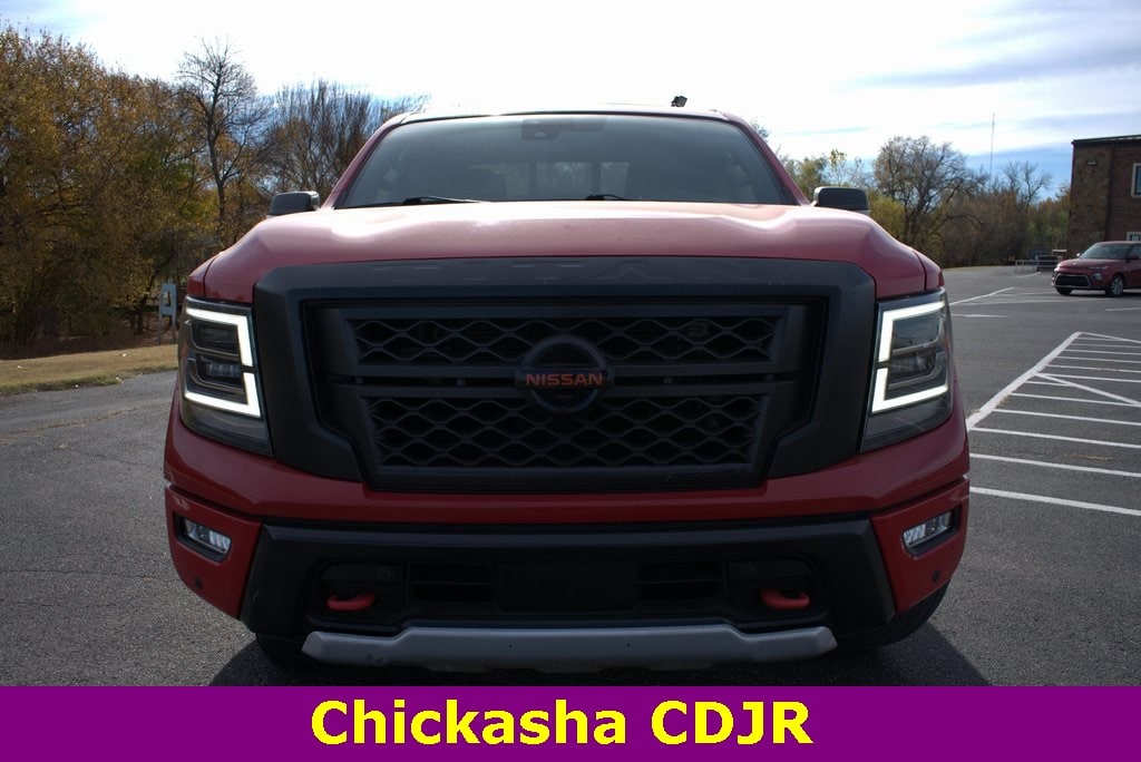 This 2022 Nissan Titan PRO-4X in Red Alert comes with the following features: 5.6L V8 DOHC 32V 400hp 9-Speed Automatic 4WD Features and options may vary from information contained on third party listing sites, please see dealer's website or call for actual vehicle specifications, and PRO-4X Convenience Package (4-Way Power Assist Seat, Heated Driver & Passenger Seat, Heated Rear Seats, Heated Steering Wheel, Intelligent Around View Monitor (I-AVM), Leather Seat Trim, Memory Driver Seat w/Auto Entry/Exit Feature, Power Folding Auto Dimming Outside Mirrors, and Side Turn Signal Lamps on Mirror Housing), PRO-4X Moonroof Package (Driver & Passenger Ventilated Front Seats and Dual Panel Panoramic Moonroof w/Tilt & Slide), PRO-4X Utility Package (Fender Premium Audio System w/12 Speakers and Proximity Activation), 3.69 Axle Ratio, 4-Wheel Disc Brakes, 6 Speakers, ABS brakes, Air Conditioning, Alloy wheels, AM/FM radio: SiriusXM, Auto High-beam Headlights, Auto-dimming Rear-View mirror, Auto-leveling suspension, Automatic temperature control, Bed Assist Grip, Blind Spot Warning, Brake assist, Cloth Seat Trim w/Vinyl Bolsters, Compass, Delay-off headlights, Driver door bin, Driver vanity mirror, Dual front impact airbags, Dual front side impact airbags, Electronic Stability Control, Electronic Tailgate Lock Deletion, Emergency communication system: NissanConnect Services, Front anti-roll bar, Front Bucket Seats, Front Captain's Seats, Front Center Armrest, Front dual zone A/C, Front fog lights, Front reading lights, Front wheel independent suspension, Fully automatic headlights, Garage door transmitter: HomeLink, Heated door mirrors, Illuminated entry, Knee airbag, Leather steering wheel, Low tire pressure warning, Navigation system: NissanConnect Navigation, NissanConnect featuring Apple CarPlay and Android Auto, Occupant sensing airbag, Outside temperature display, Overhead airbag, Overhead console, Panic alarm, Passenger door bin, Passenger vanity mirror, Power door mirrors, Power driver seat, Power steering, Power windows, PRO-4X Badged Floor Mats, PRO-4X Illuminated Kick Plate, PRO-4X Mud Flaps, Radio data system, Radio: NissanConnect w/Navigation, Rain sensing wipers, Rear anti-roll bar, Rear Bumper Step w/Electronic Tailgate Lock, Rear Parking Sensors, Rear seat center armrest, Rear step bumper, Rear window defroster, Remote keyless entry, Security system, Speed control, Speed-sensing steering, Speed-Sensitive Wipers, Split folding rear seat, Steering wheel mounted audio controls, Tachometer, Telescoping steering wheel, Tilt steering wheel, Traction control, Trip computer, Variably intermittent wipers, Voltmeter, and Wheels: 18" x 8" Painted Dark Finish Alloy PRO-4X Convenience Package (4-Way Power Assist Seat, Heated Driver & Passenger Seat, Heated Rear Seats, Heated Steering Wheel, Intelligent Around View Monitor (I-AVM), Leather Seat Trim, Memory Driver Seat w/Auto Entry/Exit Feature, Power Folding Auto Dimming Outside Mirrors, and Side Turn Signal Lamps on Mirror Housing), PRO-4X Moonroof Package (Driver & Passenger Ventilated Front Seats and Dual Panel Panoramic Moonroof w/Tilt & Slide), PRO-4X Utility Package (Fender Premium Audio System w/12 Speakers and Proximity Activation), 3.69 Axle Ratio, 4-Wheel Disc Brakes, 6 Speakers, ABS brakes, Air Conditioning, Alloy wheels, AM/FM radio: SiriusXM, Auto High-beam Headlights, Auto-dimming Rear-View mirror, Auto-leveling suspension, Automatic temperature control, Bed Assist Grip, Blind Spot Warning, Brake assist, Cloth Seat Trim w/Vinyl Bolsters, Compass, Delay-off headlights, Driver door bin, Driver vanity mirror, Dual front impact airbags, Dual front side impact airbags, Electronic Stability Control, Electronic Tailgate Lock Deletion, Emergency communication system: NissanConnect Services, Front anti-roll bar, Front Bucket Seats, Front Captain's Seats, Front Center Armrest, Front dual zone A/C, Front fog lights, Front reading lights, Front wheel independent suspension, Fully au