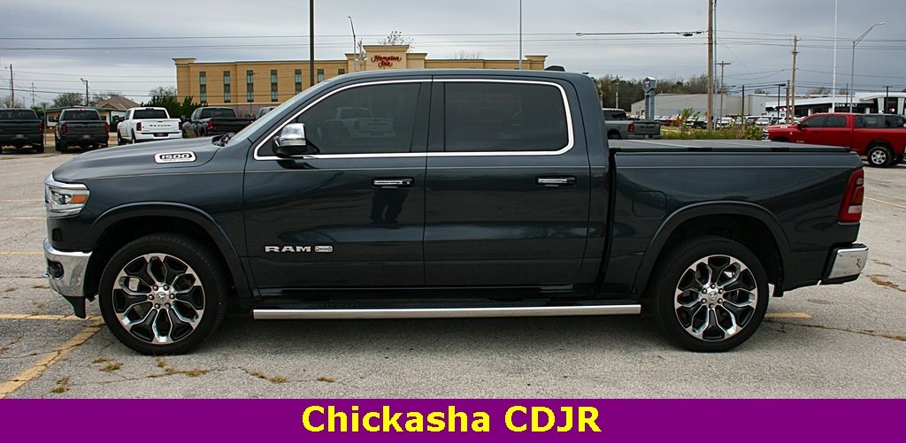 This 2021 Ram 1500 Laramie Longhorn in Maximum Steel Metallic Clearcoat comes with the following features: HEMI 5.7L V8 Multi Displacement VVT 8-Speed Automatic 4WD Features and options may vary from information contained on third party listing sites, please see dealer's website or call for actual vehicle specifications, and Protection Group, Quick Order Package 27K Longhorn, #1 Seat Foam Cushion, 1-Yr SiriusXM Guardian Trial, 10 Speakers, 12" Touchscreen Display, 3 Rear Seat Head Restraints, 3.21 Rear Axle Ratio, 4 Way Front Headrests, 4-Wheel Disc Brakes, 48V Belt Starter Generator, 4G LTE Wi-Fi Hot Spot, 5-Year SiriusXM Travel Link Service, 8.4" Touchscreen Display, ABS brakes, Adjustable pedals, Air Conditioning, Alloy wheels, AM/FM radio: SiriusXM, Apple CarPlay, Apple CarPlay/Android Auto, Audio memory, Auto High-beam Headlights, Auto-dimming door mirrors, Auto-dimming Rear-View mirror, Automatic temperature control, Brake assist, Bucket Seats, Bumpers: chrome, Chrome Exterior Mirrors, Compass, Delay-off headlights, Disassociated Touchscreen Display, Dome Dual LED Reading Lamp, Driver door bin, Driver Seat Memory, Driver vanity mirror, Dual front impact airbags, Dual front side impact airbags, Dual-Pane Panoramic Sunroof, Electronic Stability Control, Emergency communication system: SiriusXM Guardian, For Details, Visit DriveUconnect.com, For More Info, Call 800-643-2112, Front anti-roll bar, Front Bucket Seats, Front Center Armrest w/Storage, Front dual zone A/C, Front fog lights, Front reading lights, Front Seat Back Map Pockets, Front wheel independent suspension, Fully automatic headlights, Garage door transmitter, Genuine wood console insert, Genuine wood dashboard insert, Genuine wood door panel insert, Google Android Auto, GPS Antenna Input, GPS Navigation, HD Radio, Heated door mirrors, Heated Front Seats, Heated front seats, Heated rear seats, Heated Second Row Seats, Heated Steering Wheel, Heated steering wheel, Illuminated entry, Integrated Center Stack Radio, Integrated Voice Command w/Bluetooth, Leather steering wheel, Leather Trimmed Bucket Seats, LED Dome/Reading Lamp, Low tire pressure warning, Memory seat, Navigation System, Occupant sensing airbag, Outside temperature display, Overhead airbag, Overhead console, Panic alarm, ParkView Rear Back-Up Camera, Passenger door bin, Passenger vanity mirror, Pedal memory, Power 4-Way Driver Lumbar Adjust, Power 4-Way Passenger Lumbar Adjust, Power 8-Way Driver & Passenger Seats, Power door mirrors, Power driver seat, Power passenger seat, Power steering, Power windows, Radio data system, Radio: Uconnect 12 w/Navigation, Radio: Uconnect 4C Nav w/8.4" Display, Rain sensing wipers, Rear 60/40 Folding Split Recline Seat, Rear anti-roll bar, Rear seat center armrest, Rear step bumper, Rear window defroster, Remote keyless entry, Security system, SiriusXM Radio Service, SiriusXM Satellite Radio, SiriusXM Traffic Plus, SiriusXM Travel Link, SiriusXM w/360L, Speed control, Split folding rear seat, Steering wheel mounted audio controls, Tachometer, Telescoping steering wheel, Tilt steering wheel, Traction control, Trip computer, Turn signal indicator mirrors, USB Host Flip, Variably intermittent wipers, Ventilated Front Seats, Ventilated front seats, Voltmeter, Wheels: 20" x 9" Aluminum Painted/Polished, and Wheels: 22" x 9" Polish/Painted w/Inserts Protection Group, Quick Order Package 27K Longhorn, #1 Seat Foam Cushion, 1-Yr SiriusXM Guardian Trial, 10 Speakers, 12" Touchscreen Display, 3 Rear Seat Head Restraints, 3.21 Rear Axle Ratio, 4 Way Front Headrests, 4-Wheel Disc Brakes, 48V Belt Starter Generator, 4G LTE Wi-Fi Hot Spot, 5-Year SiriusXM Travel Link Service, 8.4" Touchscreen Display, ABS brakes, Adjustable pedals, Air Conditioning, Alloy wheels, AM/FM radio: SiriusXM, Apple CarPlay, Apple CarPlay/Android Auto, Audio memory, Auto High-beam Headlights, Auto-dimming door mirrors, Auto-dimming Rear-View mirror, Automatic temperature control, Brake assist, Bucket Seat